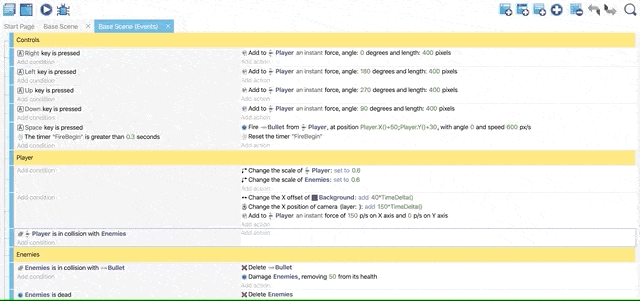 Now all the events are ready for shooting Enemies. You can add a comment on the top to classify these actions.